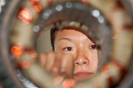 企业的女职工素以情感丰富、心细、耐久力强等优点,广泛分布在各行各业,在山东枣矿集团柴里煤矿热电公司就有300多名女工活跃在燃料运输、检修、化验、生产一线,成为了企业发展中的一道亮丽风景线。您瞧!这是一位女工在修理电机时的场面。在一个个美丽光环的衬托下,她们更加美丽、伟大。