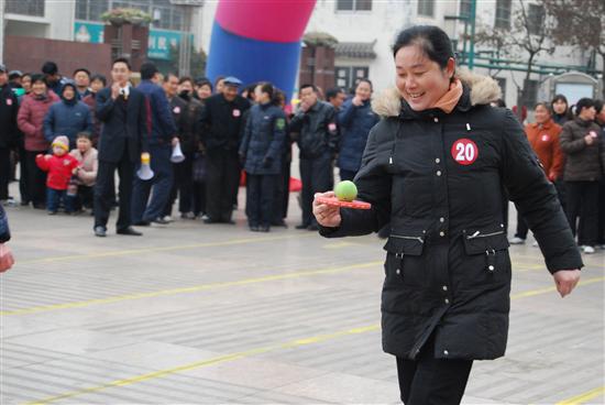 3月4日,山东枣矿集团蒋庄矿在生活社区举办庆祝“三八”妇女节女职工家庭趣味运动会,主要项目包括老年人托球前进赛、妇唱夫随障碍赛、跳跳球比赛等,为女职工家庭提供了共同参与、和谐共处的交流平台,展示出女职工奋发进取、积极有为的良好精神风貌。图为趣味运动会上激烈的竞赛场面。
