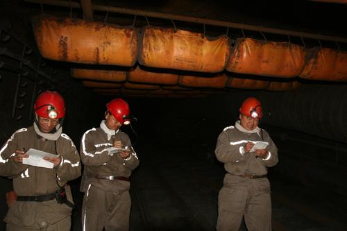 本网讯 连日来,大明矿在组织开展“吸取屯兰事故教训,敲警钟、固防线”大讨论的同时,不断加大安监员的现场安全监察力度,重点加强井下各施工地点的“一通三防”、顶板、机电等作业管理,杜绝一切违章行为及消除各类事故隐患。图为该矿安检员在1601综采工作面的沿途检查隔爆水袋。