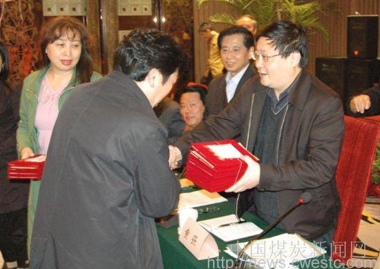 ![]() 图5、重庆地质矿业协会会长王伯清在给获奖者颁奖