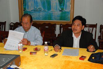 ![]() 田东经济贸易局副局长林中鹤(右)传达上级文件精神。 ![]() 小龙矿矿长陈志敏(右)根据上级指示精神作出布署。