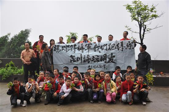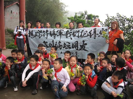 4月11日上午,我们合川论坛网友及南津街小学的少先队队员们,一道前往合川区铜梁洞二仙观深情缅怀抗日英雄杨瑞符将军。