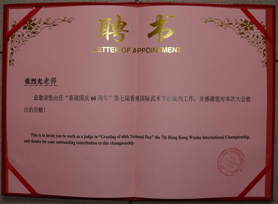 ![]() 题记:近年来,在科学发展观的指引下,中煤一建31处实现了稳健、快速发展,企业施工、生产规模以平均9.5%的速度递增,企业文化建设实现了新跨越,群众性文化体育活动丰富多彩,营造了祥和奋进的人文环境,在这个环境中,孕育出了武林“太极大师”—— 张烈光。他从六岁踏入武林大门,1983年在31处参加工作,企业为他提供了充分展示自己才能的平台。他拜访各路名师,入杨式太极门后,更是苦心修炼。2006年率领“中煤31处太极队”在“纪念简化太极拳推广50周年暨2006年国际太极拳交流大会”上夺得太极拳“刀术团体冠军”、“个人传统套路冠军”后,企业大力支持,他更是如虎添翼,在2007年香港第五届国际武术节上,获得两项个人比赛金牌。在刚刚闭幕的“2009年香港第七届国际武术节”上,被特邀为裁判员,所率队员获得七块奖牌。