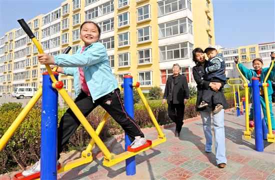 ![]() 本网讯 (记者:刘通)4月7日,山西省汾西矿福馨园小区的孩子们正在小区新安装的健身器材上玩耍。福馨园小区作为汾西矿业集团“两区改造”工程先期开工建设完成的第一个棚户区改造工程。为实现汾西矿区职工“居者有其屋”的美好愿望,2007年开始,汾西矿业集团加大力度对采煤沉陷区和棚户区职工住房进行全面改造,短短3年的时间,汾西矿业采煤沉陷区和棚户区改造建筑面积已达169.8万平方米,规划总投资22.8亿元,3年完成了过去50年企业住房建筑面积的总和,2066户矿工圆了多年的住房梦。