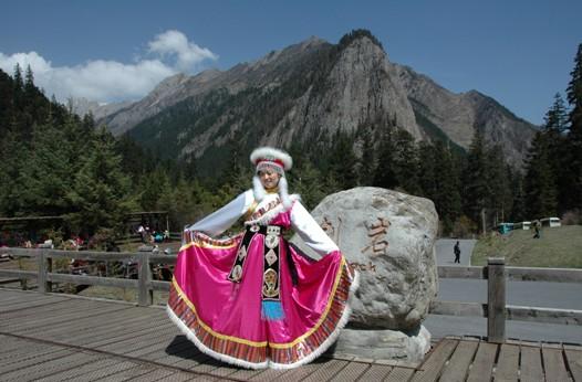 ![]() 蓝天白云下,脸膛红彤彤的藏民,围聚在海子边浓绿的草地上,兜售着假的藏银工艺品,还有一群体态壮硕的妇女,手搭美丽的藏袍,急着出租。一不留神,一顶珠光闪烁的帽子套在了我的头上,“多么好看!”她们赞叹,然后殷勤地给我披上藏袍,建议我拍照留念,或许是九寨的一草一木,抑或是九寨的山山水水,让我这个从不喜欢穿藏袍的姑娘也乐意披上了他们的服装,还同绝对造假的藏袍小伙、藏袍姑娘留下了美好的纪念。 ![]() 沐浴在这高氧浓度的自然氧巴,呼吸变得清爽,所谓的高山反应,彻底消失。我原有的呼吸道不爽似乎已跑得无影无踪。原始森林里,栈道逶迤,顶着高山的烈日,我们在树阴里穿行、躲闪,阳光偶尔晒在后背,透出暖暖的惬意。
