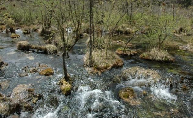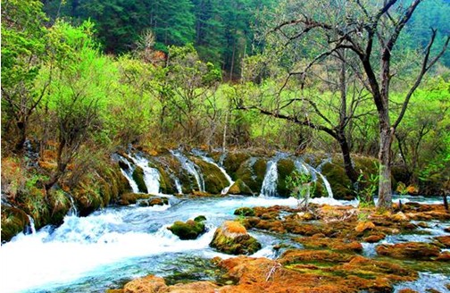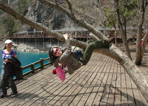![]() 那是我从没见过的奇异色调呀。我从来没试想过这样多的浓烈的颜色能如此协调地和弄在一起!听说要在十月那颜色会更加浓烈多彩,就是在这阳光明媚的四月我都已经觉得很美了,任何大胆的画师也不会有这样的创意吧。难怪有话说“黄山归来不看岳,九寨归来不看水”,亲此一游信也! ![]() 水,是九寨沟这个童话世界的灵魂所在。惊呼、赞叹,无休止的拍照,我记住了一大堆海子的名字:熊猫海、箭竹海、五花海、长海、天鹅海、芦苇海……水里能长树,树上还能长叶开花,造化的匠心独运,在九寨的深山,挥洒出神奇瑰丽的一笔。 ![]() 海子里的水,清澈无比,枯枝碎石,历历可见。活跃水中生命的小鱼,自由自在,欢快无比地游来游去,似乎浮游于天空,是那般的神奇,那般的美妙,让我都有了变为鱼儿的冲动,幻想着自己也遨游于这清澈的水下天空,整个人已被洗于一空,轻飘飘的裸游于清流,就如同那自由自在的鱼儿,不需要任何遮掩,浑然被大自然融为了一体,是多么的神圣与和谐。这里没有世间的烦恼、没有利欲的纷争、没有世间的纷繁狡诈,有的就是透明无比的大自然。藏民因为有水葬的习俗,从不吃鱼,所以它们是自生自灭的,在这高山的湖泊里,孤独终老。其实,又焉知它们不是世间最自由的生灵呢?
