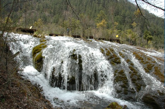 ![]() 色彩斑斓的海子,爆发出了这样的壮观:宽达几百米的瀑布,激起点点水花,宛如珍珠,又好似百米高的银幕,在深山老林间静静地倾泄、流淌,阵阵水雾,遮掩着它的激情。珍珠滩瀑布,曾成《西游记》的外景地;诺日郎,则成为了藏民心中雄伟的象征,它吸引着中外游客的青睐与驻足。 ![]() 神奇的,不仅是这里的水,还有传说中的大熊猫。虽然,我一只也未见到。神奇的,还有这里的一草一木。林间树皮剥落的,是红桦树,它那红色皮即将剥落,里面又好似长出了新嫩的树皮,光滑完整,听说叶子可以用来写字,字迹永不褪色。纸张发明以前,它就是藏民的信笺。