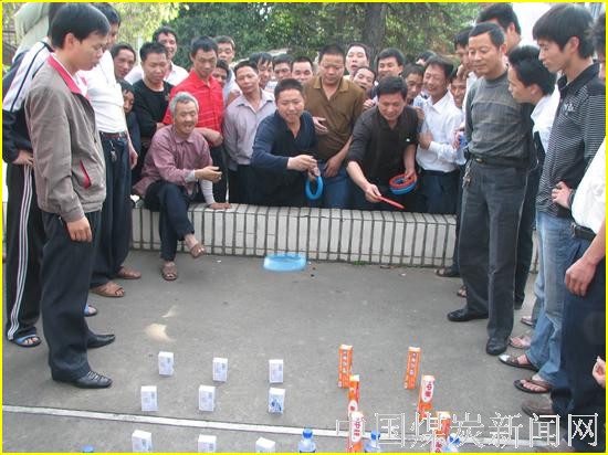 本网讯 为了让广大职工过好自己的节日。 4月30日下午,翠屏山煤矿在生活区篮球场举行投篮和套圈比赛活动,庆祝国际五一劳动节,吸引了广大职工参与,活跃了矿区的节日生活。图为该矿职工在套圈的现场。