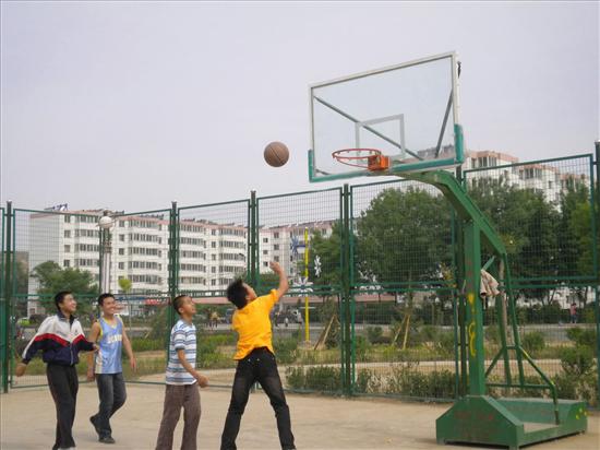 ) 5月9日,几名儿童在西山煤电公司镇城底矿工人村新落成的篮球场上练球。今年,这个矿进一步加大对居民生活小区环境整治力度,栽种花草树木、修建改造道路、增加健身设施,和谐矿山建设取得新的成效。