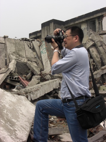 那一天,在猛烈的地震刚刚发生不久,在空空荡荡跑得只剩下他一个人的办公楼里,通过QQ,他告诉我:“俺刚从街上回来,抓拍了些市民们仓皇逃跑惊恐失措的照片,正准备传网上”。说实话,我为他担心,因为他所在的重庆市,离地震的中心,那么近。可他侠风浩荡地对我说:“没事的,俺不怕!”聊天记录记载着,当时我们说话的时间是15点20分左右,也就是说,距离地震发生顶多一小时。匆忙说了几句话,他又跑了,说去抓新闻了。我知道,那天很晚,他还在突击写稿子,上传稿子。
