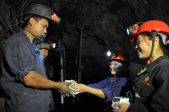 “矿工兄弟上班平安归来,是我们最大的心愿。”一句普通话语道出了广大女工家属的心声。在重庆能源永荣长河煤电公司,从井口到生产现场,从连队到职工家庭,处处洋溢着爱心嘱安全的浓郁氛围。 井口寄语 爱心温暖矿工心 “矿工弟兄们,你们辛苦了,在井下要时刻注意安全哟……”,长期以来,该公司女工家属始终坚持每周五的井口“送温暖,嘱平安”活动。夏季,烈日炎炎,她们冒着酷暑,到井口为进出井的矿工送上凉虾、西瓜;冬季,寒风袭来,她们做好热腾腾的鸡蛋汤圆送到井口为进出井的矿工驱寒;每逢节假日,她们还为上下班的职工送上饺子、汤圆,为他们缝补工装,女工们亲切的笑容,细心的叮咛,温暖着矿工们的心,那一针一线更是缝满了女工们对他们的嘱咐,近两年来,该公司女工、家属为井下职工缝补衣服上万件,她们表示还将一如既往的做好这项工作,缝牢安全第二道防线。 感受艰辛 情系井下一线矿工 “祝你平安,祝你平安,让那快乐永远在你身边……”在长河煤电公司矿井360米地层深处,伴随着熟悉而又温馨的歌声,一场以女工家属“感受井下艰辛,情系一线职工”为主题的井下送温暖话平安慰问活动正在这里开展。该公司把构筑和实施“安全协管”作为女工工作的重心,积极组织女工家属到井下第一战线开展安全慰问表演活动。她们在为战斗在一线的矿工们送上了全公司女工家属的一片温馨祝福的同时,也切身感受到了矿工们与矿井自然灾害抗争的艰辛,许多女工家属都情难自禁的饱含着眼泪。在接过慰问品的刹那间,她们的手和矿工的手紧紧地握在一起,那些因工作而乌黑的双手和脸,反衬着因欣喜而露出的洁白的牙齿,井巷中洋溢的满是家的温暖,那样的场面,是任何文字都无法阐释出来的感动……。女工家属们用实际行动鼓舞战斗在一线的职工保安全的斗志,使一线职工切实感受到了真情的关怀与温暖,使他们真正的意识到他们的安全就是家人最大的幸福。 亲情帮教细腻情感保安全 “在运料途中,你没有按规定挂好保险绳,万一跑车怎么办?你考虑过后果吗?咱的父母都这么大年纪了,你这样乱干,能让家人放心吗!”这是一位矿工家属与工作在一线的丈夫谈心时说的一番话。为了做好安全帮教工作,该公司女工家协以亲情教育为切入点,坚持开展安全教育进家庭活动,一股家庭成员情系安全、联保安全的新风在长河矿区兴起。针对职工中存在安全意识淡薄、盲目乐观型,家庭负担大、易冲动型,业务技术较差以及典型“三违”人员等情况,女工家协分别采取定期到其家里谈心帮教、“一帮一”跟踪帮扶、强化安全宣传教育等方法加以引导,让其家属参与帮教,加强亲情关怀教育,学习并签订家庭联保安全公约,细算“安全账”,以身边发生的安全事故案例警醒职工,引导他们时刻绷紧安全弦,增强自觉搞好安全的主动性,以亲情温暖、亲情感化、亲情帮教的协管工作模式营造起了人人管安全、事事重安全的良好氛围。 心系安全 巧奏亲情安心曲 “为了公司安全发展、和谐发展、率先发展,安全生产得到有力保证,我一定让他吃好、休息好,做到一个妻子应尽到的责任,因为我最大的心愿就是他能每天平安回家,那就是我最大的幸福,我想那也是大家最大的幸福吧!”。这是一位矿工家属在安全恳谈会上情真意切的发言。为达到以情感人,以情动人的目的,该公司女工家协注重劝导活动载体,采取女工家属与一线职工面对面交流恳谈。一位职工在和家属的恳谈中说道:“为了全家人的幸福,我在工作中一定时刻注意安全,绝不违章作业”。该公司女工家属用亲情化、人性化嘱安全服务活动,同心协力保安全,以更加关心亲人的生活,更加关注亲人的安全,常吹安全“枕边风”,当好贤内助,用真情为矿井安全撑起一片蓝天。 近年来,长河煤电公司女工家属协管组织发挥“半边天”作用,始终将“情系矿工、情系家庭、情系安全”作为筑牢安全生产第二道防线的出发点和落脚点,以爱心、热情、亲情、和真情感化一线职工,用她们的实际行动撑起一方安全伞。