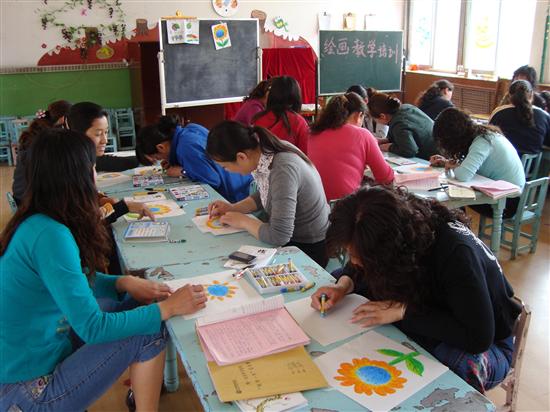 )为不断提高青年幼儿教师的业务水平,更好的为幼儿提供规范、人性化的管理。近日,枣矿集团柴里煤矿幼儿园开展了青工幼儿教师业务技能集中培训活动,活动主要针对日常教学教程、普通话训练、绘画、音乐等基本知识进行培训,收到了良好的效果。图为青年幼儿教师正在培训。