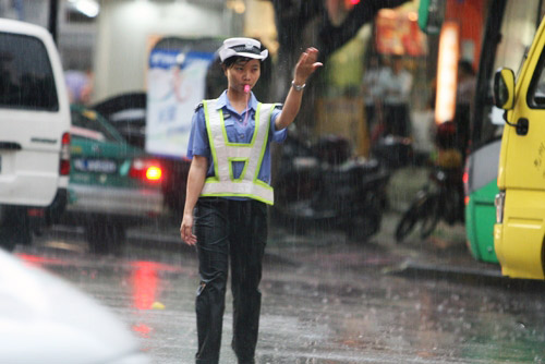 女协警冒雨指挥交通一举成名 被誉最美协警(图) | |||