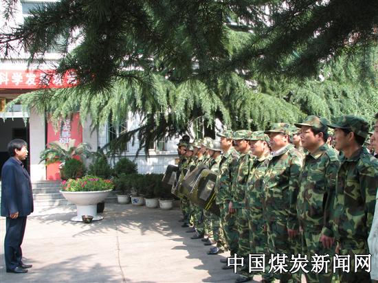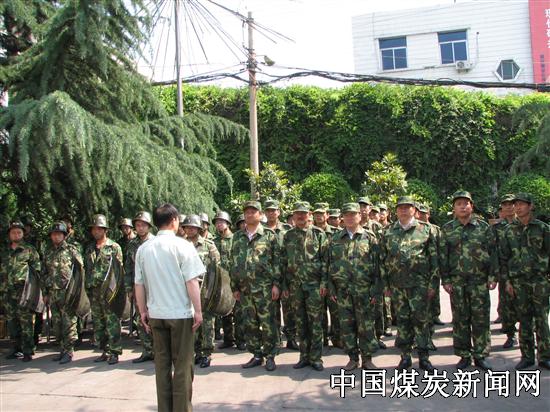 本网讯:(通讯员 任爱英)5月25日上午,董矿在办公楼大院内举办2009年军训开训仪式。董矿把准军事化军训与护矿大队军训相结合,突出实际应用。加强组织领导,做到有计划,有安排,保证按时开训。狠抓训练内容任务的落实,高质量的正规训练。准备以优异的成绩接受渭南军分区和县人武部的检查验收。