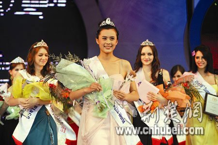 昨晚在汉举行全球总决赛 15岁四川姑娘摘得超模百万皇冠 有美女的地方注定就是焦点,何况是来自五湖四海的美女。昨晚,备受关注的湖北省第七届啤酒节暨第十九届“金龙泉杯”世界超级模特环球大赛全球总决赛在光谷体育中心举行,40多名超模选手经过活力装、泳装、时装和晚礼服等4个环节的角逐后,来自中国四川的15岁选手邹林颖笑到最后,摘得价值百万的皇冠,而另一位杀进总决赛的中国选手赵翊杉,则获得亚洲美皇后的单项奖。作为世界三大选美比赛之一,世界超模大赛规格甚高,来自47个国家的51名超模选手均是各自国家和地区的佼佼者。本次比赛自23日在宜昌开幕后,她们便开始了为期五日的湖北省内城市巡游。在24日晚于荆门举办的半决赛中,共有7位选手惨遭淘汰,其中包括曾被观众寄予厚望的湖北赛区的三位选手甘婧、赵惠和李逸轩。 经过多番赛事的洗礼,这些超模选手昨晚在T台上表现不俗,在遇到绶带滑落等突发状况时,也都以优雅的动作缓慢扶正,表现得相当镇定。 选手们除了表现得大方得体,在几轮展示环节中,也是费尽心思来凸显自己,在最为香艳的泳装展示环节,观众能清晰地看到模特的美腿在灯光的照耀下“闪闪发亮”,因为不少选手在自己的双腿上抹油了。 时装展示环节,不少选手在原本剪裁简洁的服装穿法上动脑筋,将上装打结以露出自己的小蛮腰,将T恤一边肩部滑下好达到半露香肩的效果,更有一位选手身着背部透视装亮相时,在她转身的一刹那,观众惊呼“原来她是真空上阵的”。 所有选手的亮相都赢得观众不少欢呼声,而来自中国的两位选手每每出场,总能换回更大呐喊,尤其是中国选手赵翊杉身着的青花瓷图案长款礼服,将民族特色与时尚元素紧密结合,一出场便引发现场观众持续很久的鼓掌声。 周传雄剃掉胡子回归清爽 张靓颖一开唱震撼全场 昨日决赛嘉宾都是实力派唱将。率先亮相的周传雄,一改往日颓废男形象,剃掉胡子的他清爽了不少。除了演唱自己的热门歌曲《黄昏》等,他也不忘推销自己的新歌《关不上的窗》:“觉得好听大家一定要去买张正版碟支持我!” 张靓颖昨日人气更是惊人,她还没出场,已有大批凉粉手持海豚娃娃和名字牌高呼“靓颖我爱你”,待她一开唱,欢呼声更是震撼。除了明星嘉宾人气高,评委中的两位世界顶级模特同样受到观众的追捧,不少观众偷偷跑到他们背后拍合影。 ◇现场花絮 吴大维双语主持化身“耍宝大王” 如果说靓丽的模特是最吸引观众眼球的风景线,那么昨晚最能留住观众耳朵的,当属主持人吴大维。双语主持的他,俨然已化身为“耍宝大王”。 大赛主办方领导上台发言时,他笑称“喝啤酒的人说话底气就是足”,女主持介绍嘉宾是全能艺人时,他也调侃道,“嘉宾是超人吗?”在被搭档调侃泳装是男性最爱看的环节时,吴大维也马上接上一句“我们是从专业角度来看的”,充分调动了现场气氛。