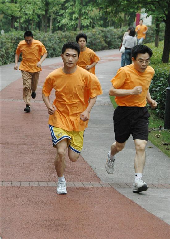 这次活动得到了队党政领导的大力支持,队党委书记傅向军、副队长李俊和各工程实体、厂的负责人都带头参加了比赛。许多年过50的老同志也加入到活动中,并坚持跑完了1600米的赛程。图为比赛中的精彩镜头。
