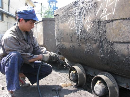 本网讯 (通讯员:任伟)春季以来,山东丰源煤电股份有限公司赵坡煤矿抓住雨水少的有利时机,加紧对设备进行换季维修保养,及时消除设备故障隐患。图为该矿工作人员用注油机对矿车轮进行注油保养。