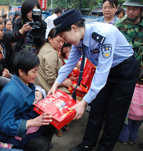 2009年5月6日,从成都赶往彭州市。知道蒋敏目前在彭州光明路派出所工作,去年地震不久,蒋敏在新浪网访谈间默哀的画面一直定格在脑海里,还有她的疲惫。路上便和她联系,想要看看此刻的蒋敏。电话打通后,得知她正在前往龙门山东林寺板房区的路上,要参加一个爱心行动,下午还要去一个小区参加活动,行程很紧张。而我们此时正赶往彭州市龙门山小学,决定在那里见一面。 由于通往龙门山的道路还在修,加之山里下雨,车开得很慢。当我们到达小鱼洞大桥时,由于道路原因再次塞车,于是下车步行。巧合的是就在这里,我们看到了一辆警车迎面开过来,同行的司机提醒我可能是蒋敏他们一行。与蒋敏打电话,果然是他们。于是掉头去追他们。道路堵塞的好处显现,我居然赶上了蒋敏他们的车。 第一次见到蒋敏本人,很恬静,因为车已经满了,她就让我和她挤一下,和她离得那么近。此时的蒋敏,身穿蓝色警服,人依然很瘦,但精神状态感觉还不错。此次龙门山之行,是根据蒋敏自己的意愿开展的灾区爱心行动。蒋敏4月份看望灾民时看到板房区条件有限,想到夏天可能会受到蚊虫干扰,于是捐出自己一个月的微薄工资(1252元)为灾区购买了电灭蚊器送达东林寺板房区。一路上蒋敏大多时间是一个人默默地看着车窗外,表情恬淡…… 在彭州市公安局,蒋敏再次接受新浪网访谈。对蒋敏来说去年终身难忘,而面对那么多荣誉时,她常常觉得因为做得不够而愧对,但荣誉也给她带来动力,时刻提醒自己尽力去弥补做的不够的地方。 “我就是一个小警察,干好自己的本职工作这样最好” “我觉得自己愧对这些荣誉,在去年地震中还有很多很多我们的同事和其他人,他们做的比我好。真的,我说我拿到这个奖项觉得很愧对它” “能帮助别人就帮助别人,能做些什么就做些什么” 访谈实录: 主持人:今天这个活动举行的初衷是什么?是不是最近一直都在参加一些爱心活动吗? 蒋敏:不是最近吧,而是长期的关注,从地震发生到目前,对灾区的关爱一直在持续。今天过去主要是给他们打打气,让他们鼓起更多的勇气。 作为警察,与民众交心最重要 主持人:这里去过几次了?跟他们那里的人是不是很熟了? 蒋敏:很多次了,见到他们能够知道就是那里的人,但是有些人名字可能叫不出来了。 主持人:您刚才说这是一个长期的活动,从去年512之后您一直都在做一些爱心公益活动吗? 蒋敏:从去年开始,社会各界有很多人都在关心他们。就我们公安这一块,在开展保平安活动,需要经常去看一下他们。因为他们住在板房区,需要下去宣传一些防盗、防火措施,另外我们公安部在开展大走访活动,经常跟他们在一起,跟他们唠嗑,你办事情感觉就会不一样。对老百姓来说,交心是最重要的,警察不一定高高在上、很威严,对老百姓来说只要不犯法怕你干吗。作为警察,平易近人一些,跟他们能够交心、成为朋友,开展工作就会轻松得多。 主持人:大家也很关心你现在的身体情况,看起来感觉你状态还不错。 蒋敏:(笑)你们看到的就是最真实的样子。好多了。 主持人:听说你打算再要一个孩子? 蒋敏:会的,会要的。 我就是一个小警察 主持人:在512之后,由于你的事迹被很多人关注,被人关注后有没有一些压力? 蒋敏:对我这样一个平常人来说,去年对于我来说,真的是终身难忘的,应该说经历了很多、感受了很多、自己也成长了很多。对自己的一些人生来说,过去有时候对一些事情心胸可能会狭隘、会计较一些东西,但经历过地震以后,觉得没必要太多地在乎别人的看法、计较很多东西,得与失会看得很淡,心胸变得更宽广。对于我自己来说,我就是一个小警察,干好自己的本职工作,这样最好。 时常觉得自己愧对得到的荣誉 主持人:对您来说,就是把自己的事情做好,会把压力看得淡一些。 蒋敏:压力,看个人吧。对我自己来说,压力肯定是有的,这是不可否认的。 主持人:哪方面的压力? 蒋敏:应该说去年得到的荣誉以前从未有过这么多,我觉得自己愧对这些荣誉,在去年地震中,还有很多很多我们的同事和其他人,他们做的比我好。真的,我说我拿到这个奖项觉得很愧对它……(停顿) 之后我们领导就开导我说“好好工作来回报它,不要把它当作压力,作为一个工作的动力,想想以后怎样好好工作来弥补你觉得你愧对的这一块”,我就说“我明白了”。 主持人:所以这一年你就是这么做下来的。 蒋敏:尽力吧,我经常告诉自己尽力。我也知道有很多工作没有做好,有时候回到家里或者感到好累好累的时候,看到那些荣誉,有时候那些荣誉是一种动力,看到这些奖状的时候觉得不行,还是要好好工作。 主持人:这一年心灵上有没有觉得孤单? 蒋敏:人应该说都会有孤单的时候,最大的孤单就是心灵上的孤单。应该说我老公很好,对我很关心;此外还有我们局的领导他们会请一些心理医生,希望我能尽早地走出来。我能够体会到他们那种关爱,不知道用什么语言来形容来表达自己的谢意,只有两个字“谢谢”来表达我内心的感激。 [旁边一家媒体的记者问到了她和女儿,蒋敏没有哭泣,没有眼泪,淡淡地追忆她和女儿的感情,当时有一种错觉,她的女儿还活着。这么多天接触到的人中唯一一位提到过去没有眼泪的人,蒋敏更多地是在追忆她们在一起的幸福和血肉相联的情感。] 尽自己最大努力去帮助别人 主持人:今后有什么打算呢? 蒋敏:对我和我的爱人