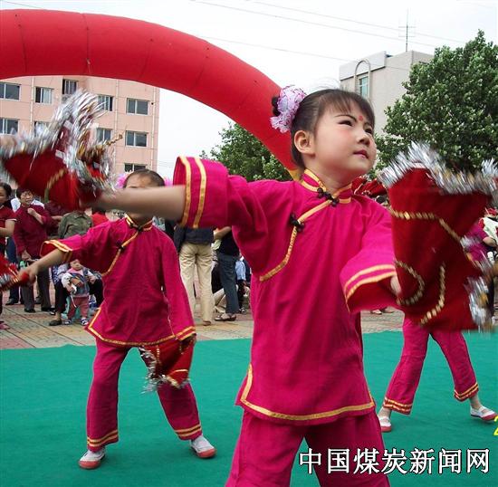 图为孩子们正在表演舞蹈 本网讯:6月1日上午,山东煤机集团莱芜煤机公司幼儿园举办庆“六一”文艺演出活动,在为期1个多小时的节目中,一百多名幼儿小朋友纷纷表演了舞蹈、独唱、游戏等十多个精彩的节目,孩子们的精彩演出掀起了一个又一个高潮,赢得了幼儿家长和观众们的一致好评,使小朋友们在欢热的气氛中度过了一个有意义的节日。