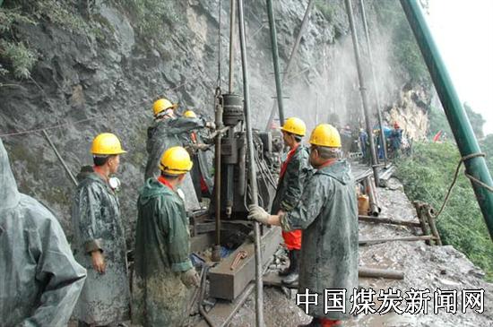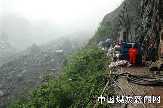 本网讯 (记者 肖锋报道) 6月5日15时许,重庆武隆县铁矿乡发生山体崩滑后,为了抢救被埋27名铁矿矿工的生命,重庆一三六地质队地质技术人员在第一时间奔赴灾区一线,在极短的时间内把正在綦江等地施工的7台钻机抽调到抢险地点,7日10时,在铁矿+940米放水平硐正上方开始实施向下钻孔,成为最先向井下被埋矿工钻进生命通道的钻机。随后南江地质队、208地质队也分别开钻。5天以来,战斗在抢险第一线的地质技术人员和钻工们每天24小时不间断地工作。 由于钻探地点前面100多米深的崩崖悬崖,后面也是数百米高的峭壁,仅有一块4米来宽的施工场地,并要并排摆开三台钻机同时施工,施工环境非常困难。尤为严重的是,在这海拔900多米高的悬崖峭壁上施工,水源供给困难,全靠运水车供给,严重制约了钻进速度。但是,抢险救灾队员们没有一人退缩,吃饭休息都在钻机,为抢救被埋矿工的生命想尽一切办法努力向下钻进。5天以来,没有一人洗过一次澡,睡过一个囫囵觉,有时还因供给困难吃不上饭。一三六队抢险救灾现场总指挥、钻探高级工程师李俊副队长,安全生产科邓平阳科长,一面现场指挥钻探工作,一面积极为能源集团为首的抢险救灾指挥部出谋划策,发挥了很好的地质专家和参谋助手作用,受到了市委、市府领导和能源集团抢险指挥部的高度评价。 ![]() 崩岩滑坡现场一角