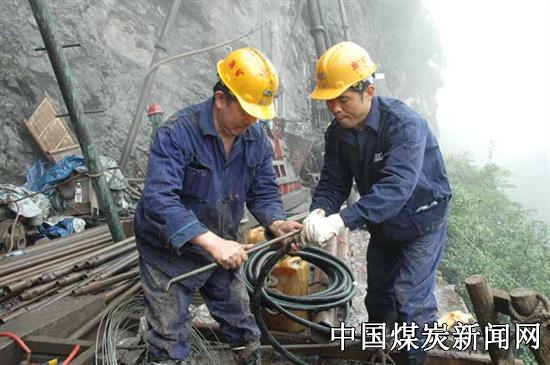 ![]() 参加抢险的能源集团鱼田堡煤炭职工正在安装水管