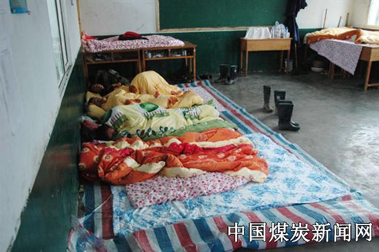 ![]() 正在铁矿乡小学教室打地铺休息的抢险队员