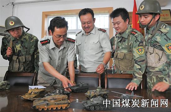 )为加强干部职工国防教育,提高职工的国防观念和军事基础知识水平,济二矿武保支部建成自己的国防教育基地“国防园”。“国防园”设有国防教育影像播放室、国防教育展室、兵器模型室、军事阅览室等。走进兵器模型室,能看到矿武保支部自己制作的多种轻武器、火炮、战机、坦克、导弹的英姿,使职工在参观的同时普及了国防知识,增强了职工的国防意识。图为职工参观学习仿真模型现场。