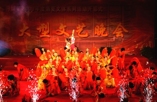 本网讯 为丰富职工群众的业余生活, 6月17日晚,山西潞安集团常村煤矿,在该矿灯光球场隆重进行了一年一度的“常村煤矿2009年消夏文体系列活动开幕式”,这项活动已连续举办了第15个年头,很受职工群众的欢迎。此项活动的开展,极大地提高了全矿职工家属喜欢体育运动、参与文艺活动的积极性,对建立和谐文明矿区、增强职工凝聚力起着重要的作用。削夏活动历时3个月,涉及文体项目100多项,大都是职工家属喜闻乐见、趣味性强,对身心健康的项目,活动将于9月中旬结束。