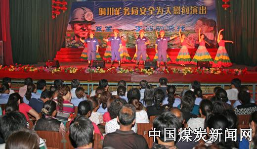 这次安全文艺慰问巡演是铜川矿务局在“安全生产活动月”中事先安排并精心组织的安全系列活动之一,参加演出的人员主要有局属华瑞公司、多经公司、各巡演单位的文艺爱好者及铜川市群众艺术馆部分专业演员。安全文艺巡演由铜川矿务局安监局、铜川矿务局团委组办,文艺节目有舞蹈、独唱、音乐快板、小品、歌伴舞等,整台演出紧扣安全主题,演出间隙还穿插有观众安全知识有奖答题。安全文艺巡演从6月18日开始,主要在全局8个生产矿井进行巡回演出。 通过文艺节目这种职工群众喜闻乐见的形式,寓安全教育于文艺演出、文化娱乐活动之中,既丰富活跃了矿区职工家属的业余文化生活,又进一步增强了职工群众的安全意识,激发了广大干部职工进一步搞好安全生产的积极性、主动性和自觉性。图为慰问演出团在下石节矿演出剪影 ![]() 慰问演出现场