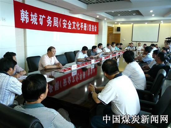 《安全文化手册》是根据《陕西煤化集团公司企业文化战略规划及实施方案》和《韩城矿务局2009年安全文化建设实施意见》的基础上总结、归纳、提炼、整合的,并经过广泛征求各方面意见、反复修改编制完成的一本指导性文献,共分安全理念、安全文化“九五二三”体系,安全生产规律、安全生产管理、安全标志五个部分,不仅是安全文化建设的拓展和创新,而且也是一本面向职工的指导性文献。《手册》内容主题鲜明、内容丰富、图文并茂、浅显易懂,具有较强的针对性和实用性。 韩城局局领导苏满天、徐冉忠、唐建生在颁布手册发布会上分别强调,全局职工要在《安全文化手册》的指导下,学习好、宣传好《手册》内容,在工作中不断探索新的方法和途径,用安全文化教育职工、引导职工、规范职工、凝聚职工,为企业安全发展打牢根基,促进矿井安全持续稳定好转。