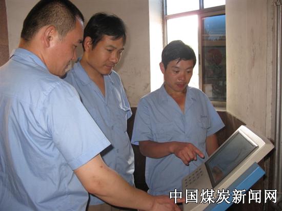 )近日,山东丰源煤电股份有限公司赵坡煤矿购进了两台智能型指纹考勤机用于地面考勤管理,职工只要上下班路过轻轻按一下手指,系统就会自动记录职工的考勤情况。确保了考勤管理的公正、公平、科学、准确。图为该矿职工正在使用指纹考勤机。