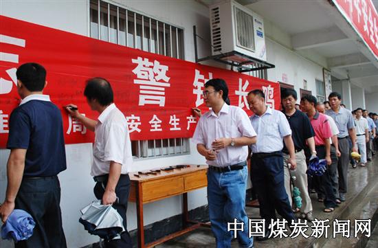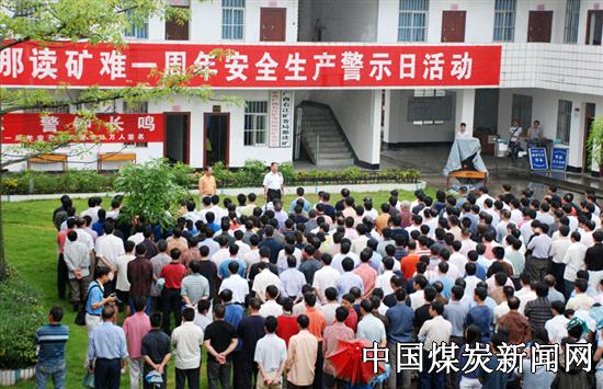 本网讯:苍天垂泪,大地哀鸣。今天上午,那读矿区阵雨纷飞,在去年的这一天,那读矿发生了严重透水事故,36位工人兄弟走上了不归之路。 上午9点钟,右江矿务局在那读矿办公楼前召开召开“7.21”那读矿难一周年安全生产警示大会。全体局领导、局机关部门领导、各矿领导和管理人员,那读矿部分职工近500人冒雨参加了会议。局党委副书记陈桂生主持了会议,局长叶仿拥在会上作了警示讲话。 会上,全体与会人员首先向“7.21”矿难职工进行默哀。接着,局长叶仿拥作了警示讲话,他要求全体管理人员和广大职工要吸取“7.21”那读矿难血的教训,时刻紧绷安全生产这根弦,坚持“安全第一、预防为主”的安全生产方针,认真履行职责,在生产工作中要时刻敲响安全警钟,铭记安全生产责任重于泰山,坚决杜绝违章操作,关注安全,关爱生命,确保我局安全生产。 随后,与会人员在“警示不忘,警钟长鸣”条幅上签名,并观看了“7.21”矿难图片展。 图一为大会会场。 ![]() 图二为矿务局局长叶仿拥在作警示讲话。 ![]() 图三为与会人员向矿难职工兄弟默哀。 ![]() 图四为职工们在安全横幅上签名。 ![]() 图五为与会人员在观看“7.21”矿难图片展。 ![]() 相关链接