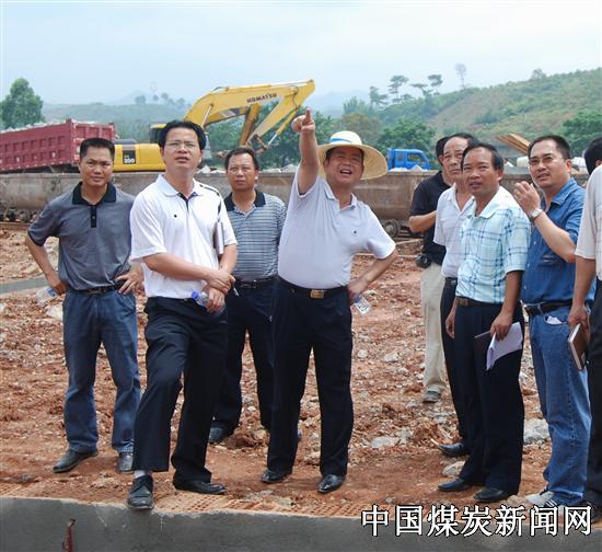 【本网讯】 为加快推进保群煤矿机械化建设工程进度,7月27日上午,广西右江矿务局党委书记、局长叶仿拥深入保群煤矿现场办公。叶局长详细查看了现场施工情况,了解施工进度,并对工程建设提出具体的意见和要求。强调各有关部门要进一步增强紧迫意识和责任意识,并落实“五个抓”即:抓工程环节沟通协调;抓工程建设督查;抓存在问题的破解;抓工程质量把关;抓提高工作效率,把加快保群煤矿施工进度,按期完成工程建设,保证矿井按期竣工投产作为当前工作的重中之重。图为叶仿拥局长顶着烈日深入施工现场检查指导工作。