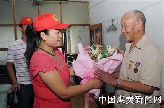 本网讯(通讯员 吴辉) 7月28日上午,安徽皖北煤电集团刘桥一矿青年义工带着鲜花及慰问品,来到矿离休老干部、曾参加过抗日战争、抗美援朝的老战士张士科家进行慰问;向老人祝贺节日并聆听老人讲述抗战历史。