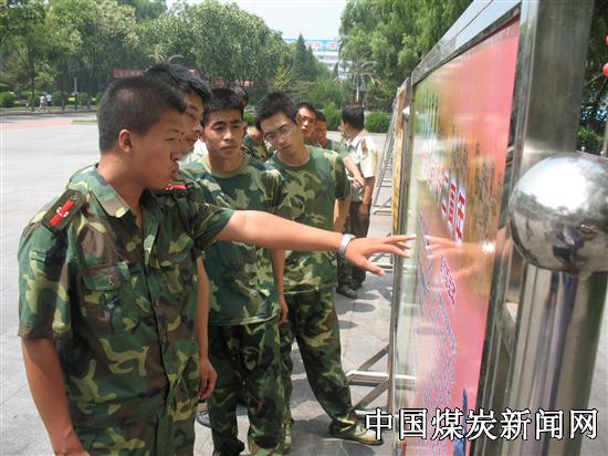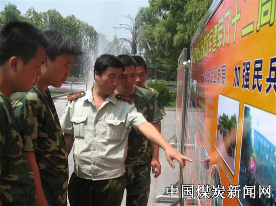 本网讯   为引深国防教育,弘扬人民解放军的优良传统和作风,使广大预备役官兵和民兵树立居安思危的思想。7月28日,阳煤五矿武保部在办公楼门前集中进行了国防教育和爱国主义牌板展。图为预备役官兵和民兵正在接受国防教育。