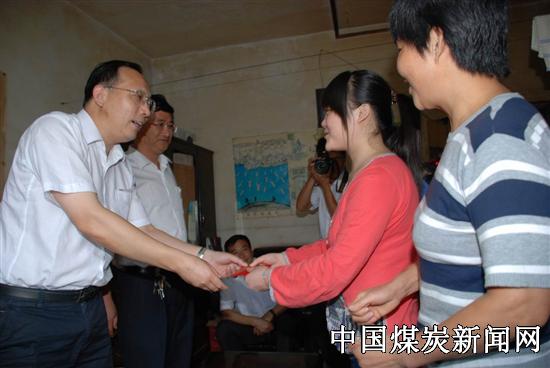本网讯 (特约记者 王强)2009年9月1日,对于郑煤集团裴沟矿退休职工韩广林来说是个难忘的日子,他18岁的女儿韩雨今年八月底以优异成绩被河南工业大学动漫设计制作专业录取后,高额的学费让他这个贫困家庭一筹莫展,就在这天上午,郑煤集团裴沟矿党政领导雷丁轲、陈全洲来到他的家中,亲手为韩雨递上3000元助学金,让贫困矿工子弟终于圆了大学梦。