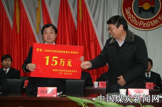 韩城局领导为桑树坪矿送劳动竞赛奖金