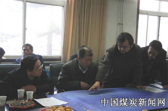图为生产技术人员为局领导汇报井下生产系统调整情况