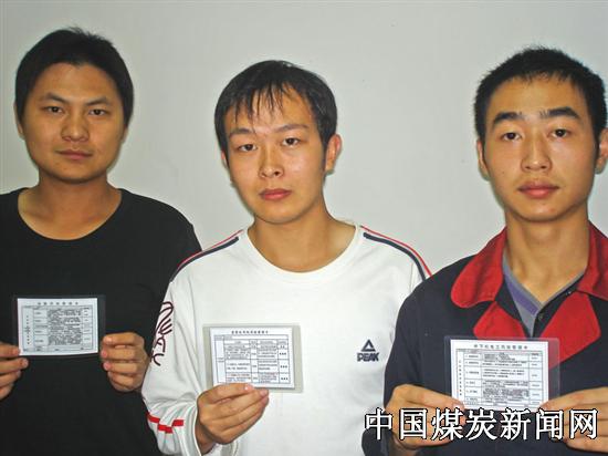 图为项目部几名职工在展示岗位风险管理卡。