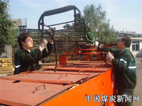 进入四季度以来,山西阳煤集团二矿运输区精心检修机电设备,提高机电设备的稳定高效运行,让机电设备在零故障状态下运行,确保了安全生产。图为机电队职工正在检修电机车集电弓。
