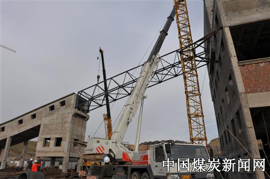 双欣矿业有限公司洗煤厂的原煤仓至筛分车间栈桥成功吊装,这次栈桥制作采用钢结构焊接,是由山东方大安装公司制作并吊装完成。