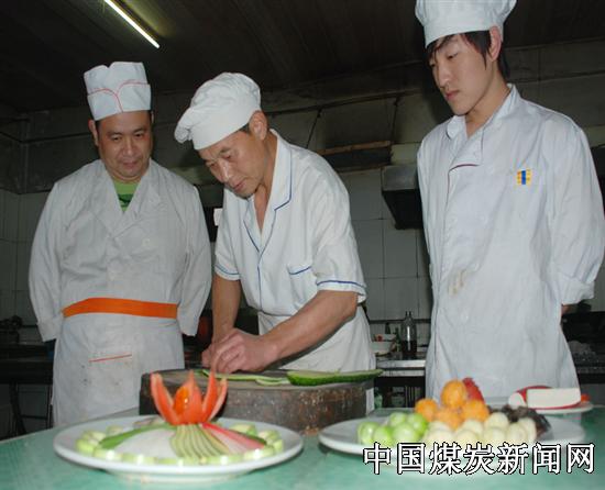 本网讯 今年以来,安徽淮北矿业集团工程建设公司朱仙庄矿建项目部,把以人为本建企业,作为学习实践科学发展活动的有力抓手,针对广大职工反映较为强烈饮食问题,项目部高薪聘请高级厨师为食堂工作人员传经送典,(见图)不断丰富和满足广大职工对饮食的要求。