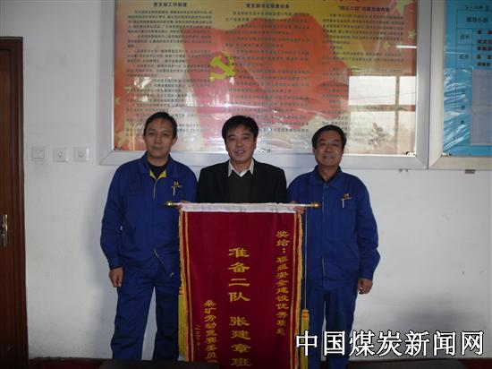 本网讯 安全、高效、按期地完成3310综采工作面安装任务,事关采掘系统调整胜负之决战! 务必在17天时间内,突击完成皮带运输机、刮板运输机、转载机及电器设备等178矿车、约720吨重大件的下运任务,确保3310综采工作面前期运输、供电系统的安装与形成。 任务就是命令。 10月20日,陕煤韩城矿业桑树坪煤矿下料二队接受了下运机电设备任务。队党政工联席会议决定:组成了36人的三个突击班,由队长、书记、技术员分别任八点班、四点班和零点班的带班“班长”, 任务分解到班组,责任到班组长, 由此 拉开井下千米运输线设备下运突击战的帷幕。 安全是下料运输的关键。该队在三个班各选派技术精、作风硬的老工人担任安全质量监督员,配合班组长检查监督全过程下运的安全质量工作。张丰军既是带班副队长,又是安全的细心人。10月21日四点班, 他带班是首次下运设备。当16辆排车行驶到3310联巷时,按安全下运规定,他先对沿线轨道和各部绞车提提升系统安全检查, 当发现运输线一段有稍许坡度时,当即组织工人在此处新增设了一个挡车器,这一措施,起到超前预防和及时消除了下运矿车下滑跑车的安全隐患。在此期间,全队共排查各类运输安全隐患11处(次) 。 “再苦再累也要完成当班任务,不能拖了工作面安装的后腿。”这是全队职工的共识,更是追求的目标。10月28日,刘伟带领四点班12名工人下运皮带机头、减速机、机头大架、电动机等大件18辆矿车,比往常班次增加了3矿车设备。他们在用二部绞车提车时,不慎使一辆装有大件的平板车掉道。面对平板料车,比处理起3吨矿车掉道要费事的多。平板车比起3吨矿车的底盘既低又大, 加之平板车装有设备重量达4吨之重,相对在支撑矿车底盘车轮复位上道要比3吨矿车难的多。他们不气馁,积极应对,果断处置,扛来圆木作垫料,用轨道复位器分两次顶提,采取顶、垫、移的方式,硬是将 “庞然大物” 牵引上道。这天由于任务重, 料车掉道影响, 刘伟和他的工友连续奋战19个小时, 直至29日11时20分才完成当班任务。似如这样的加班延点,在准备二队来说已习以为常,该队车间工会主席李新强说道:“队工会每班都要送矿泉水、饮料、肉夹馒、饼子、面包等到井下,确保工人吃饱喝好打好突击战。” “干群拧成一条绳,全力以赴保下运。”这既是该队干部工人行动的口号,又是干群奋战的真实写照。工人高永利的父亲住院后,家里接连打电话催他回去探望,他装着无事正常正班,直到3天后的10月30日,队领导得知情况后,当即令高永利“停工”, 催其回家处理好家事后再来上班。10月27日,全队下运进入最紧张阶段,也是班组之间联手攻坚的一天。当天上四点班的张建章班,在完成当班14车下运任务后,当得知零点班要完成30车下运任后,为了缓解和减轻零点班压力,在张建章动员和倡导下,四点班人员积极参与支援零点班突击下运,他们自愿延点近3个小时,帮零点班提运14台料车后才离开升井。该队党支部书记郭宽运身患有冠心病,稍有劳累就身感疼痛,他就将救心丸药瓶带在身上,以防早治,坚持带班无空岗。该队队长李琳吃住在井口, 每天下两次井是家常便饭。在10月22日,他上完八点班,在晚八时许,他在队部接到井下电话汇报说运输机车有了问题,李琳当即下井到现场,及时妥善地协调和解决了运输工作的争执问题,使当班工作顺利完成。 敢拼才能赢。截止11月14日,经过数十个日日夜夜奋战,全队百名职工群力拼搏,该队比计划提前一天完成了突击任务,靠一股敢拼打硬仗的连续作战精神,在笫一战役划上圆满的句号。为此,在十月份,该队夺得了该矿劳动竞赛委员流动红旗竞赛奖。如今, 该队又挑起配合综采队、运输队下运90台综采支架的重担,他们充满敢打必胜信心,保持和弘扬敢拼精神,又全身心地投入到新的决战。 图为该队党政工领导喜捧流动红旗。