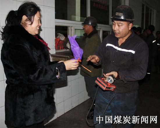 本网讯 “平安夜快乐!”“谢谢!”风水沟矿矿灯房外洋溢着温馨快乐的气氛。 12月24日晚上11点半,风水沟矿党委政工部组织部分女工在矿灯房等候下井的工人,把一个个平安果送到了升入井职工的手中,一再叮嘱他们,要把平安带到岗位上、带回家中、要把安全永远记在心中。