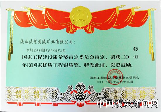 | 陕煤黄陵二号煤矿荣获“国家优质工程银质奖” | |||