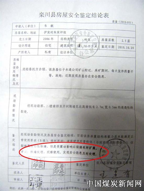 在栾川县房屋安全鉴定管理办公室出具的鉴定结论中明确提到房屋裂缝受震动影响有所扩展。