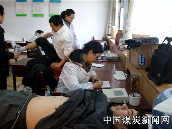 下组图片为淮南市职业病防治所在国投新集一矿为矿工进行健康体检时的情景。