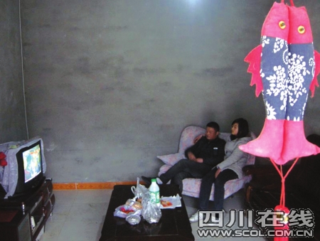 ![]() 2010年2月6日,农历腊月廿三,唐明贵满脸笑意,一手扶着木梯,小心地将灯笼挂上了屋檐。 这里是蓥华山麓,什邡红白镇峡马口村,距离震中汶川直线距离只有10多公里。震后第二个春节,和村里大多数人一样,唐明贵搬了新房子,找到新工作、开始了新的生活。 新房子 5个人6间房还有单独的车库 学校发了一条双鱼型挂饰,女儿欣喜地挂到了新房子客厅的大门上,一直没舍得取下来。 去峡马口的土路,狭窄而且坑洼。沿着峡谷穿行,几乎一路都在上坡。不足十公里,却走了半个多小时。下车发现,比山外冷得多,峡谷间雾气重重。难怪地震前的夏天,避暑的人趋之若鹜。路边是村委会,篾板围成的办公室前,笔直的不锈钢旗杆十分显眼。一面五星红旗,迎着寒风高高飘扬。 村委会东头不远,一座不规则的小院,便是唐明贵的家。红瓦、白墙、朱漆,简洁而大方。未完工的围墙下,围了窄窄一溜土,除了些蒜苗和蚕豆,还有几株腊梅,正迎春怒放。 “房子不错啊!”面对赞美,40岁的汉子谦虚了几句,然后领着我们参观。主房一共6间,客厅、饭厅、4间卧室,转角处做了厨房,清一色的白色地砖、墙砖。电视、冰箱、洗衣机一样不少,浴室里装了电热水器。“家里5口人,足够住了。”唐明贵说,不算后面的猪圈和厕所,主房有100多平方米。还有一间车库,里面停着唐明贵的面包车。 新房是在原来的宅基地上建起的,原来的房子已成了废墟。被地震埋葬的,还有唐的妻子和岳父,以及全家大部分积累。那时候,岳父留守老屋,唐明贵和妻子、女儿、儿子、岳母一起住在场镇上。妻子开着副食批发部,他买了货车拉煤,岳母照顾上学的儿子、女儿。但,一切戛然而止,他却无能为力,惟有以泪洗面。 2008年9月,新学期开始,女儿和儿子去了邻近的洛水镇上学。唐明贵决定修房子,不能让儿女没了家。11月,老宅的废墟上,新房动工了。建房连带装修,共花去14万余元。去年暑假,儿女从学校放假回来,第一眼看到新家的眼神,他至今都记得。 新伴侣 地震组合家庭更懂对方的心境 时间是最好的疗伤药,易传英走进了他的生活。15岁儿子的遇难,让她更能理解他的心境。 因为放寒假,除了唐明贵和岳母方孝群外,女儿唐倩和儿子唐世龙也在家。砌了白瓷砖的灶台上,63岁的方孝群在做午饭,16岁的唐倩打着下手,9岁的唐世龙在灶下烧火。因为有客人,除了蒜苗回锅肉,还多了一个芹菜炒肉。此外,还有一碟红白镇特产的豆腐干。吃饭的时候,唐明贵拿出一瓶酒,捧出一把生花生,“我们这天气冷,都喜欢喝点酒,喝了暖和。” 饭后不久,唐倩的手机响了起来。“易阿姨说,她已经到什邡了,叫我们别担心。”易阿姨叫易传英,是唐明贵的对象。去年11月,经人介绍认识后,两人开始交往。实际上在此之前,就有好几个人来介绍,但唐明贵一直没有答应,连面也没有去见。丧妻之痛,一直折磨着他,“如果不是放不下儿女,我早就走了极端。” 唐明贵至今仍保留着他的结婚证,那是地震后,他从废墟里刨出的唯一物品。“以前经常看,看一次哭一次。”轻轻吹了吹,唐明贵把结婚证收了起来。有段时间没拿出来了,上面沾了些灰尘。同样沾灰尘的,还有半瓶眼药水。时间是最好的疗伤药,易传英走进了他的生活。15岁儿子的遇难,让她更能理解他的心境。 2月3日,两人一起去了红白镇“5·12”陵墓,赶在立春前最后一天,按照当地风俗,为葬在这里的妻子、儿子挂坟。唐明贵对妻子说了很多话:娃娃们都放寒假了,女儿又考了好成绩,儿子却只有80多分,儿子的牙齿还没换完,前两天掉的那颗牙齿,扔上房顶却又掉了下来……与以往不同的是,在易传英的陪伴下,唐明贵那天没有哭。 新希望 修好路跑客运日子总会好起来 老唐坚信,随着重建全面完成,避暑胜地一定会重新兴旺,“我们还等着挣点钱结婚呢。” 从陵墓出来,两人去逛市集买年货。唐明贵选了4只大红灯笼,“恭喜发财”4个大字金光灿灿。易传英选了几张脚垫,上面写的是“出入平安”。“各人选的,都代表各人的愿望。”唐明贵说,他现在压力很大,一家老小 都靠他,对象没有稳定的收入,修房子还欠了好几万。 房子修好后,唐明贵去了附近煤矿,成了一名采煤工。从开店到挖煤,从“唐总”到“老唐”,他咬牙坚持了下来。但做惯了生意的人,显然不满足于此。他花两万元买了辆二手面包车,希望跑跑客运。但红(白)峡(马口)路太烂,面包车车况又差,高昂的修理费,让他最终放弃。 不过最近,老唐跑客运的念头又冒了出来。红峡路列入了重建项目,从1月份开始动工改建,将全程铺设为沥青路面,预计明年下半年完工。而在红白镇恢复振兴旅游规划中,峡马口也占据了重要位置。“我对象在学驾驶,以后她也能帮我一把。”按照他的打算,在没有更好的工作前,自己继续在煤矿上班,而易传英将在路修好后跑客运。他始终坚信,随着重建全面完成,这个避暑胜地一定会重新兴旺,“我们还等着挣点钱结婚呢。” 采访结束的时候,唐明贵送我们出门。转了一圈后,却心急火燎跑了回去,开始准备挂灯笼。他原本想腊月廿八才挂,但看到村子里各家各户都挂起灯笼贴了对联,年味渐浓后,他就再也按捺不住了。于是,当我们还未走远,青山之间就已多了几丝亮色。