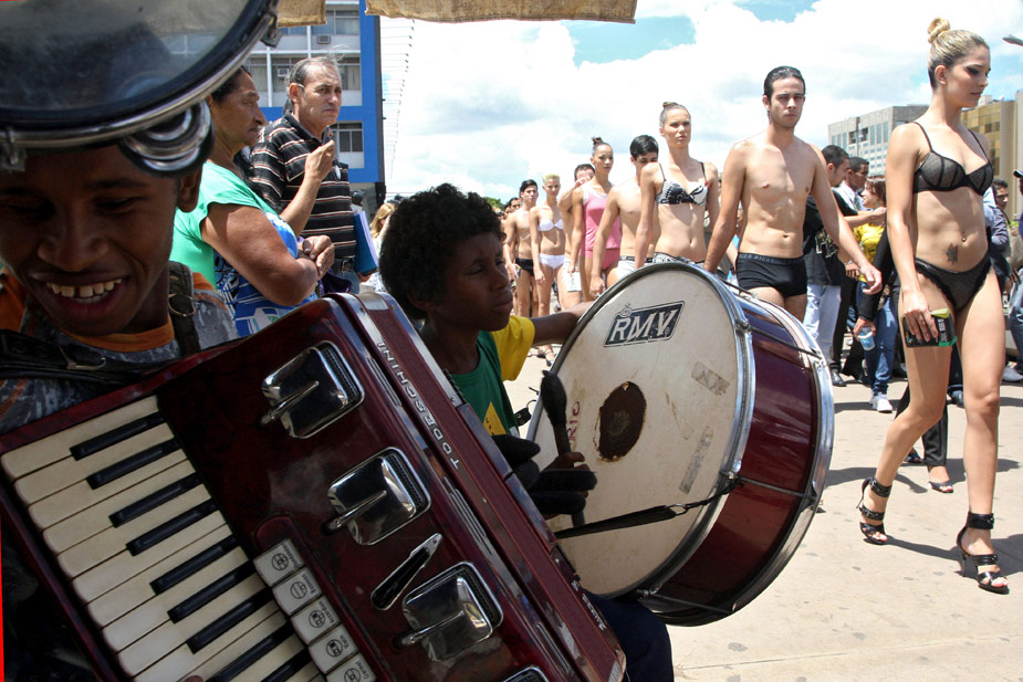 巴西全国内衣日 靓模巴士车站秀性感【组图】