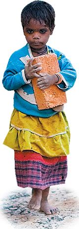 ![]() 赤脚走路已经令人揪心,然而一双小手还抱着大砖头。2月3日,一名小女孩在印度新德里贾瓦哈拉尔-尼赫鲁体育场施工现场捧着一个大砖头赤脚走在石路上。